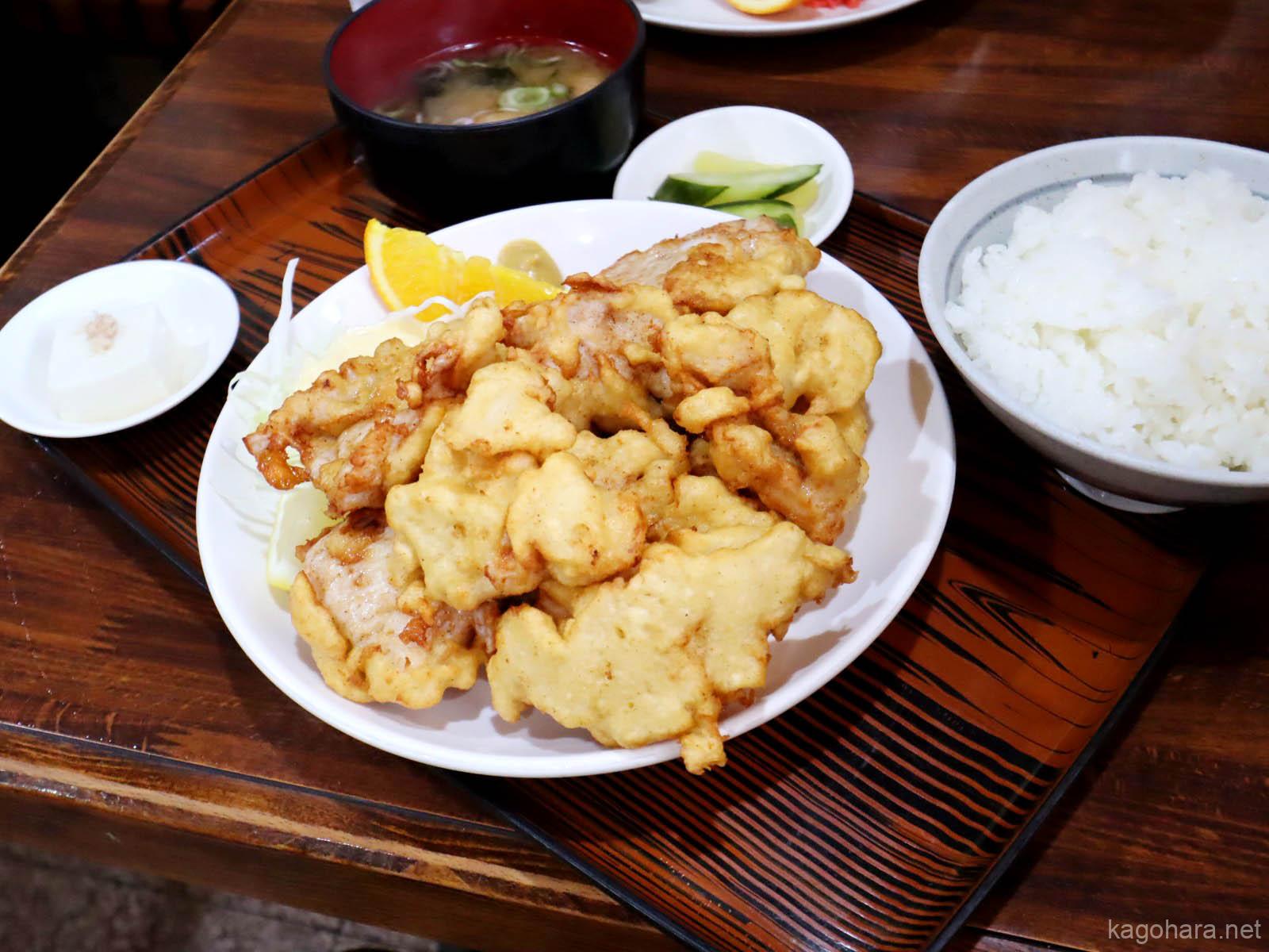 東松山市松山町2丁目「ニュー北味」の唐揚げ定食(おかず大盛り)2019年