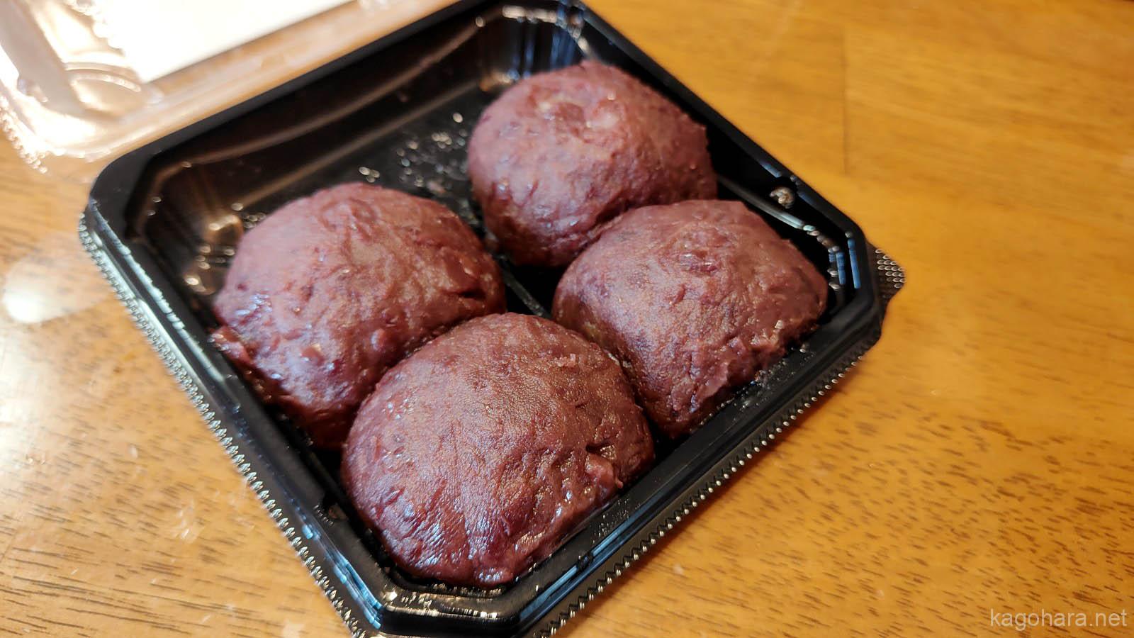 ぼた餅はつぶあん、小ぶりなのが4個入り。