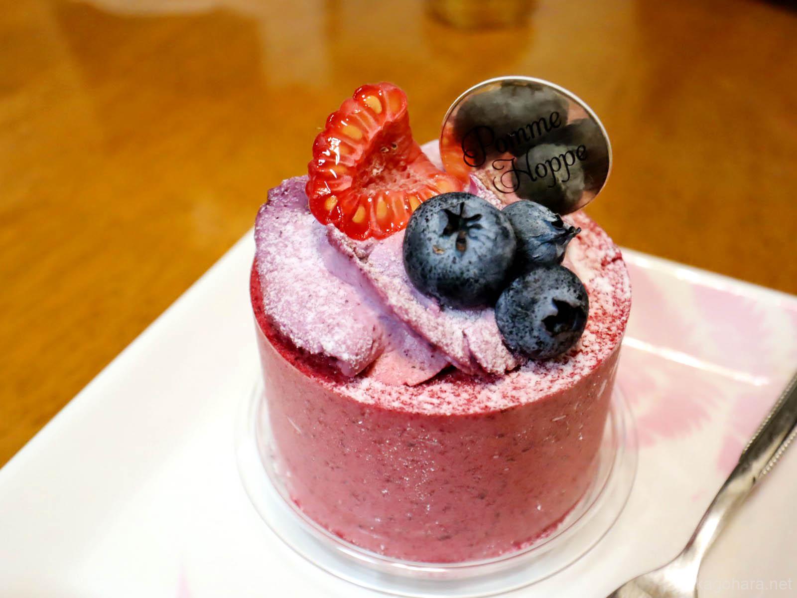 濃厚なカシスやブルーベリー、ライチなどが使われたムースケーキです。
