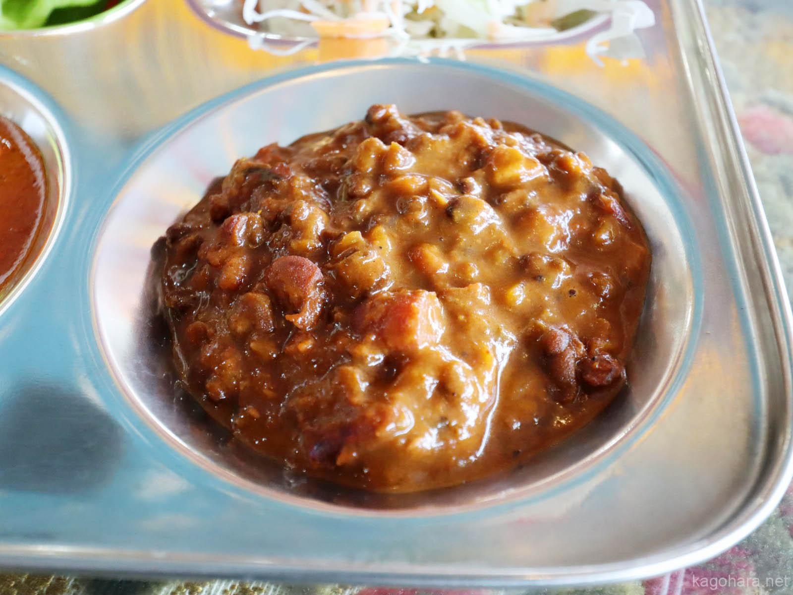 最初のカレーは豆とトマトのカレーで。