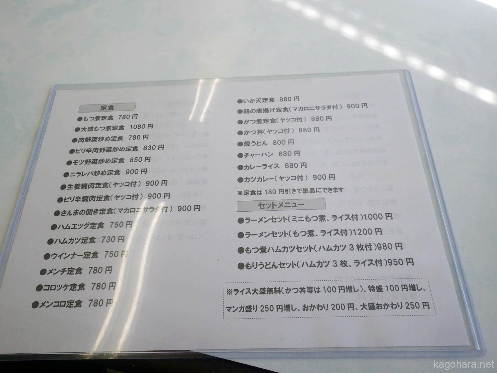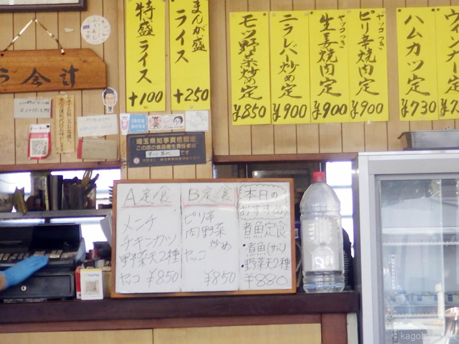 各種定食などがずらり。