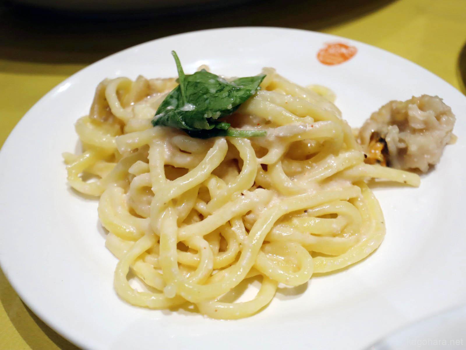 もっちもちの生パスタにねっとり美味い明太子クリームがよく合います。