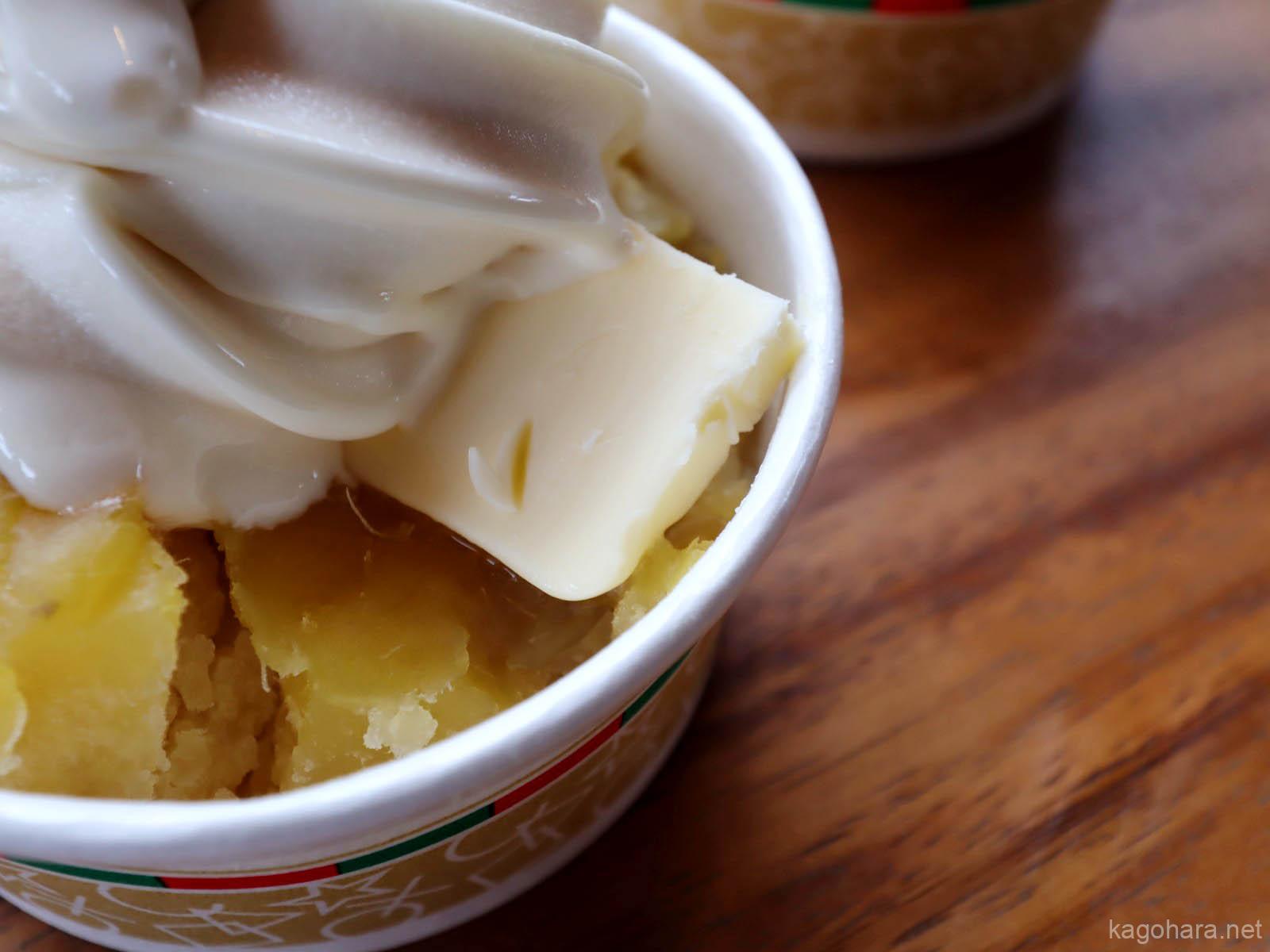 下層は熱々の焼き芋とバター。