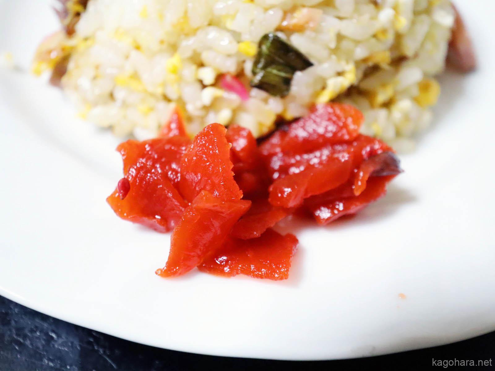 付け合わせが真っ赤な福神漬けというのは、なかなか珍しい組み合わせです。