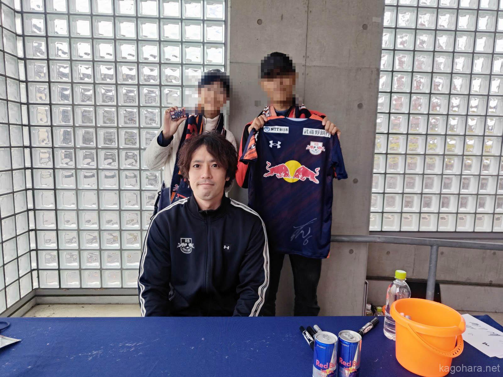 J3で優勝した去年のキャプテンで掘りの深いイケメン、石川俊輝選手にサインを頂いて記念撮影。