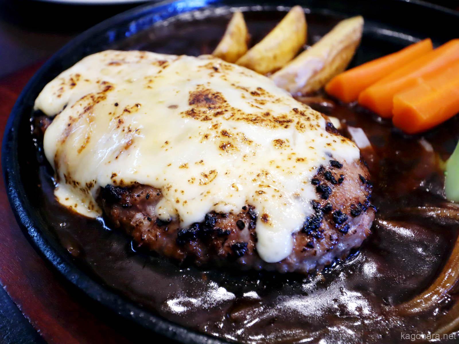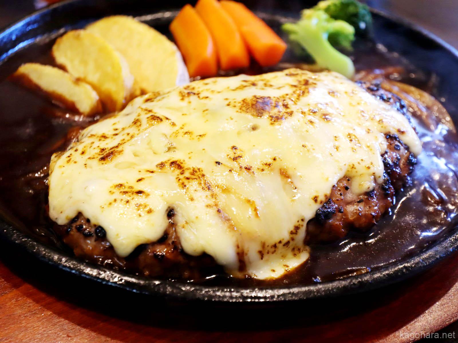 200gのハンバーグの上にとろっと溶けたチーズ。