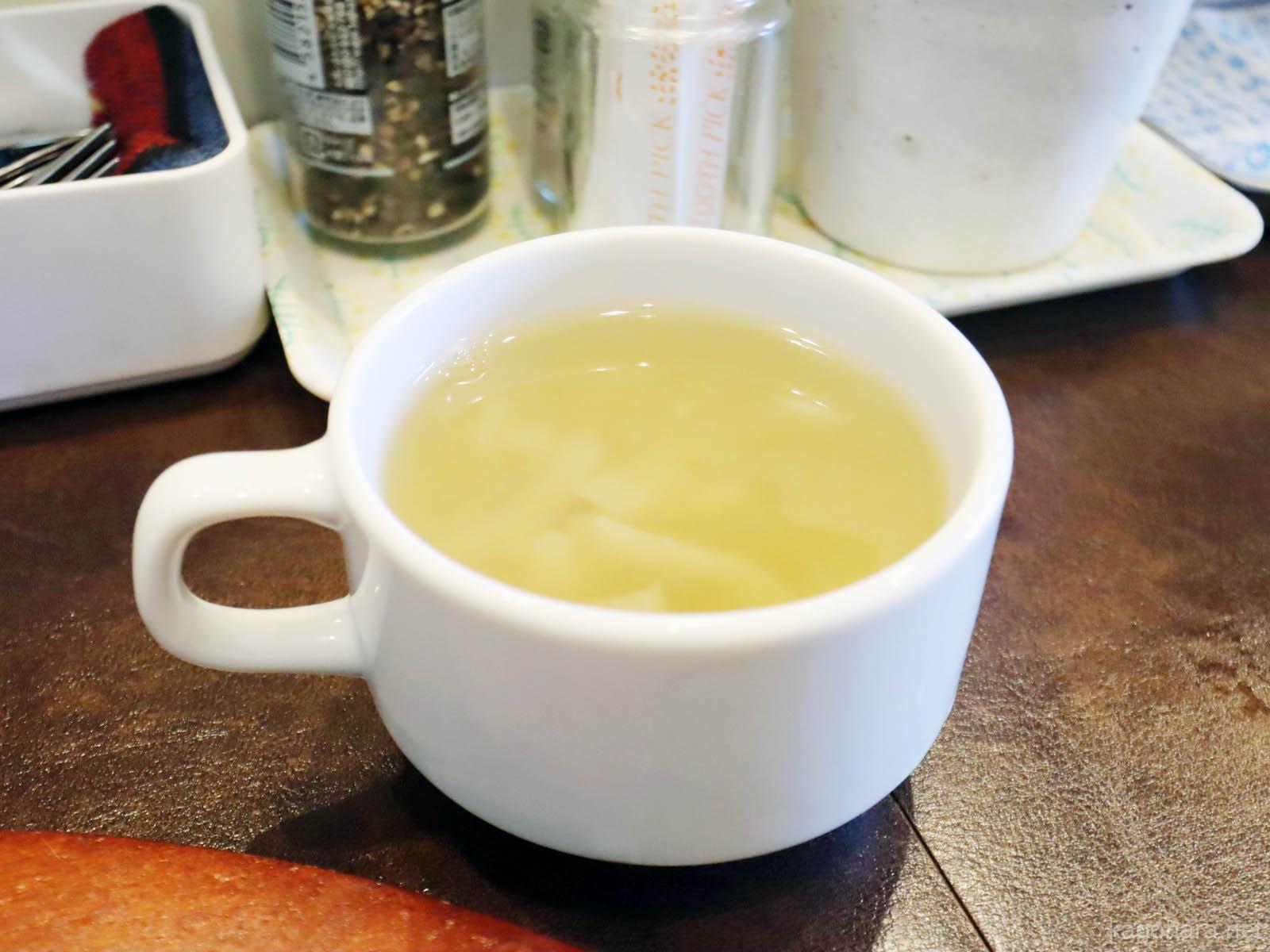 メインのチーズハンバーグにライスとスープ、ドリンクが付きます。