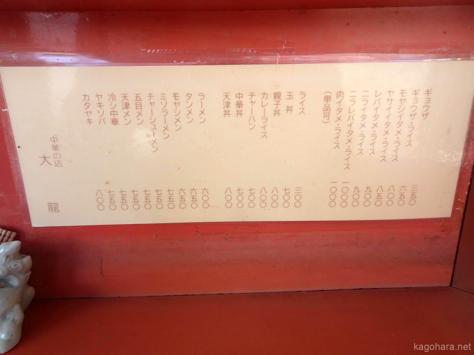 熊谷市本町1丁目「大龍」今回やってきたのは熊谷市本町1丁目、高城神社前の中華料理店「大龍」です。存在は知っていたけどずっと入ったことのないお店でしたが、この度ようやく初入店です。
