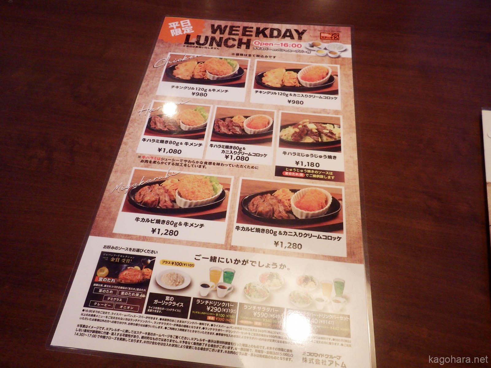深谷市上柴町東4丁目「ステーキ宮」の日替わりランチ