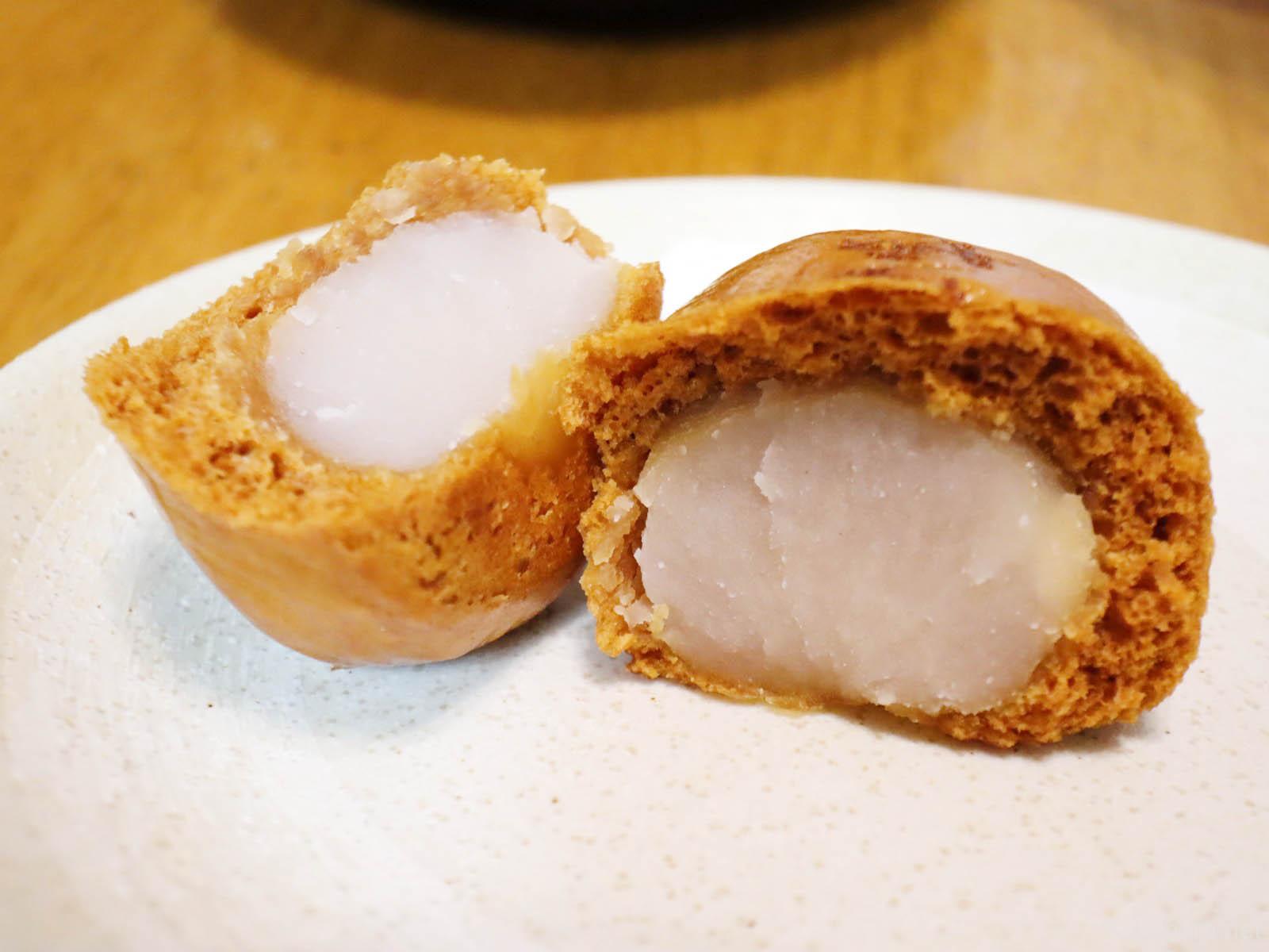茶色の香ばしい生地の中に包まれているのは意外にも白あん。