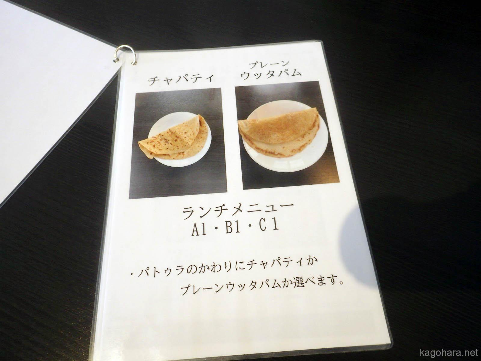 パトゥラはチャパティかプレーンウッタパムに変更可能。