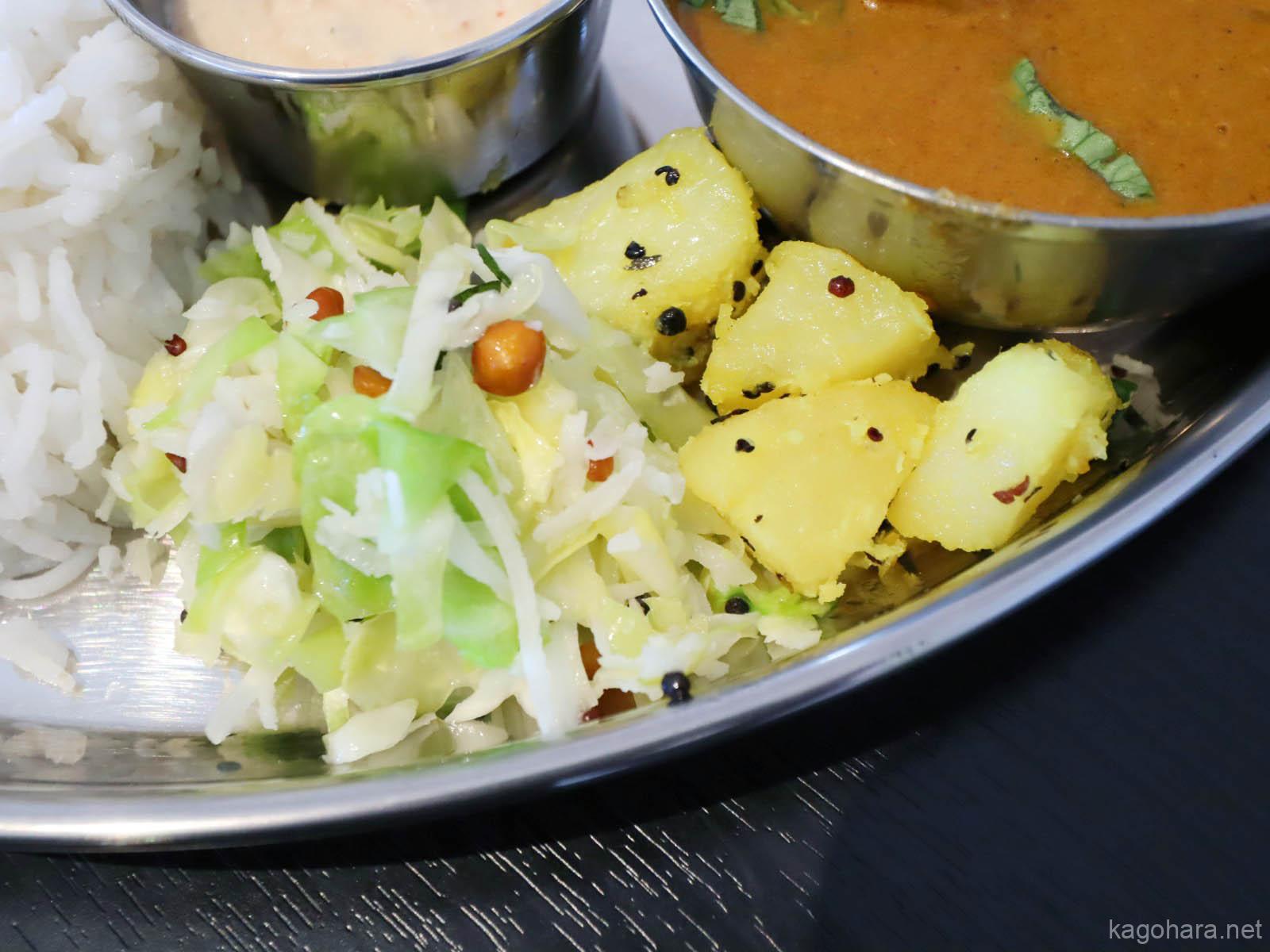 熊谷市拾六間「ジェバス チェンナイ キッチン」のC2セット(チキンココナッツミルクカレー・じゃがいもとほうれん草のカレー・マトンキーマ卵カレー)
