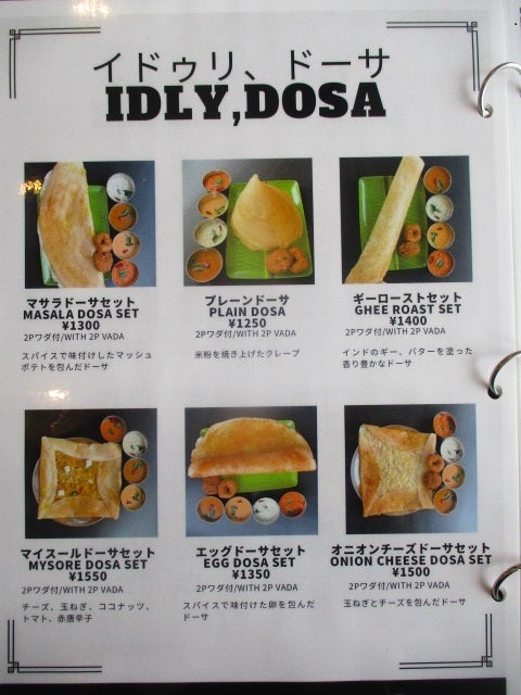 グランドメニューでは中に入れるものによってたくさんの種類のドーサがあるみたいです。